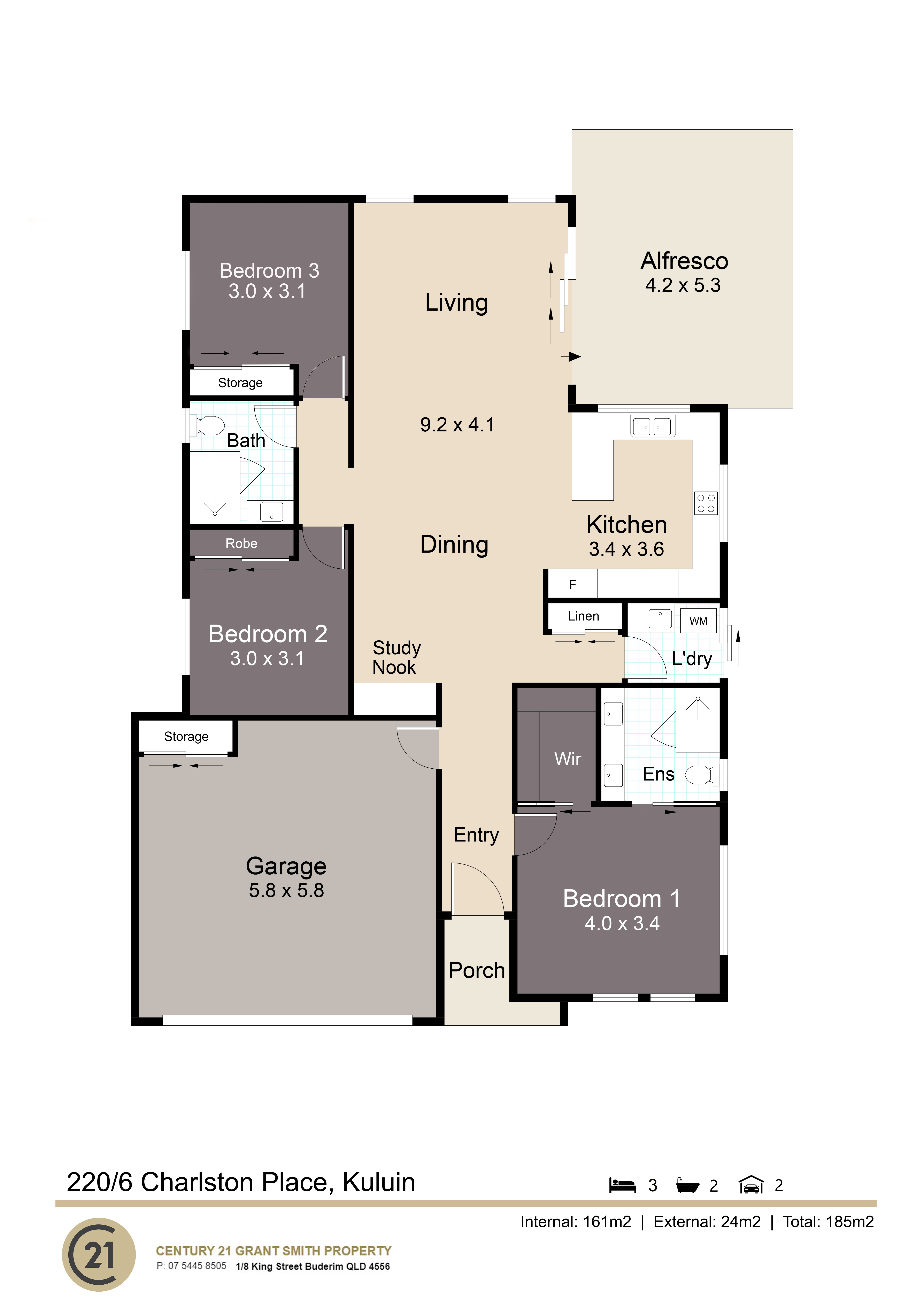 Three Light Filled Bedrooms With Built-insTwo Luxury BathroomsDucted Air-Conditioning & Fans Generous Size Backyard & Covered Alfresco, FanInternal Access To Double Garage, Built-In CupboardSpacious Open Plan Living AreaCarpeted Bedrooms Kitchen & Serving WindowWall Oven & Induction CooktopDishwasher & Built-In MicrowaveQueen Size Master Bedroom SuiteAmple Storage ThroughoutSolar Panel PowerCentral Location & Walk To The Club HouseSite Fee $260 Approx Per Week Security SystemFenced